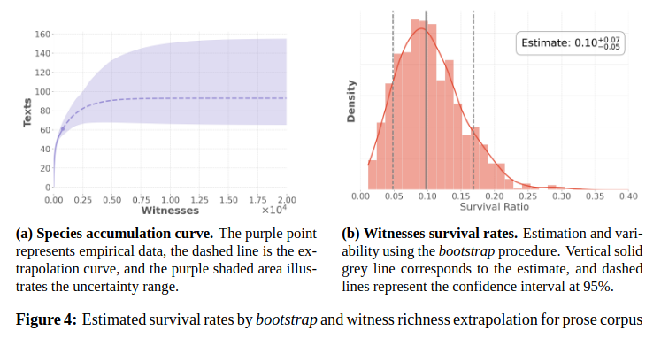 Our knowledge of past cultures relies considerably on written material. For centuries, texts have been copied, altered, then transmitted or lost - eventually, from surviving documents, philologists attempt to reconstruct text phylogenies (“stemmata”), and past written cultures. Nonetheless, fundamental questions on the extent of losses, representativeness of surviving artefacts, and the dynamics of text genealogies have remained open since the earliest days of philology. To address these, we radically rethink the study of text transmission through a complexity science approach, integrating stochastic modelling, computer simulations, and data analysis, in a parsimonious mindset akin to statistical physics and evolutionary biology. Thus, we design models that are simple and general, while accounting for diachrony and other key aspects of the dynamical process underlying text phylogenies, such as the extinction of entire branches or trees. On the well-known case study of Medieval French chivalric literature, we find that up to 60% of texts and 99% of manuscripts were lost (consistent with recent synchronic “biodiversity” analyses). We also settle a hundred-year-old controversy on the bifidity of stemmata. Further, our null model suggests that pure chance (“drift”) is not the only mechanism at play, and we provide a theoretical and empirical framework for future investigation.